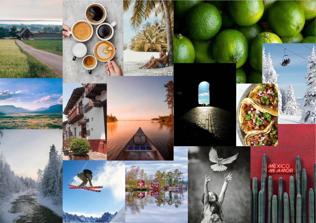Moodboard för att komma fram till färger, formspråk och en känsla i det vi vill förmedla.