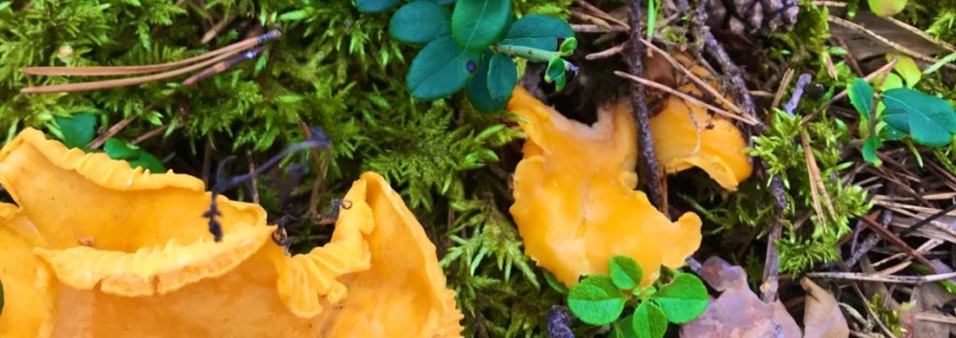 Idag är det dags att skriva lite om om vinsterna med att äta i säsong. Bilden ovan tog jag i skogen som ligger bara några hundra meter hemifrån när jag plockade kantareller och lingon som förgyllt några av våra måltider den senaste veckan. Att ta vara på det som skogen och trädgården har att erbjuda är ju en typ av säsong men för alla oss som är långt ifrån självförsörjande så handlar säsong trots allt i första hand om vad vi köper i butiken.