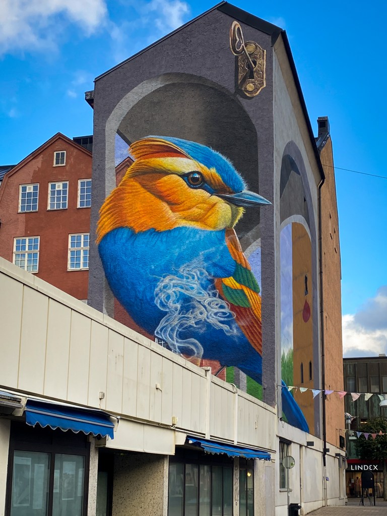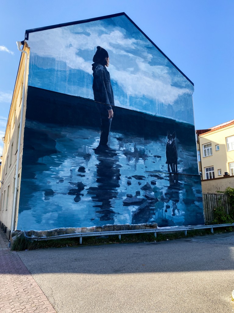 På morgonen tog vi en promenad i höstsolen. Hälsans stig bjöd på fina vyer precis vid vattnet och sen genom staden. Tegelbyggnader och väggmålningar är något som verkligen höjer en stad. De här väggmålningarna var riktigt bra och det fanns flera som vi inte hann med att se. Kika på Artscape Vänersborg om du har vägarna förbi.